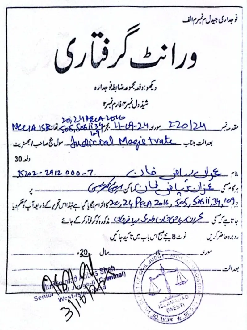 واضح رہے کہ این سی سی آئی اے کی جانب سے وارنٹ گرفتاری کے لیے باقاعدہ درخواست دائر کی گئی تھی۔