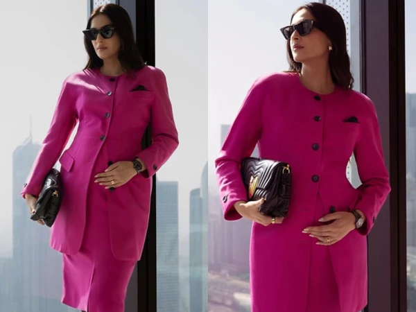 تاہم اب سونم کپور نے انسٹاگرام پر ایک دلکش فوٹو شوٹ کے ساتھ اپنے دوسرے حمل کی تصدیق کردی ہے۔ شیئر کی گئی تصاویر میں انہوں نے ایک گلابی کوٹ اسٹائل لباس پہن رکھا ہے، جس کو انہوں نے بلیک ٹائٹس اور ہائی ہیلز کے ساتھ میچ کیا۔ کالے رنگ کے خوبصورت ہینڈ بیگ اور سن گلاسز نے اداکارہ کی اسٹائلنگ کو مزید چار چاند لگا دیئے۔ تاہم سب کی توجہ ان کے نمایاں ’بیبی بمپ‘ پر مرکوز رہی، جسے وہ تصویر میں تھامے بھی نظر آئیں۔